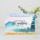 If living in a place that nourishes your soul is important to you, then you've made a wise decision to move to that very place... the mountains. Our new address card features a watercolor mountain scene with motivational text saying "Live in a place that nourishes your soul" and informational text that states "We moved to the mountains." On back of this card, the mountain scene is sufficiently transparent to read your important news - your new contact information. All text on front and back except for "the mountains" text graphic can be easily revised on the personalization template.