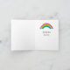 A cute dog on a motorcycle surrounded by a colourful rainbow and stars with customize/personalize text on the back.