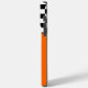 This custom motocross themed phone case has a white number plate graphic that's ready to be personalized with your name and bike number. The number plate is set against an orange background with a black and white chequered flag border.