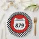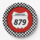 Tailgate in style at your next motocross race with personalized plates. These plates have a white number plate that's ready to be personalized with your name and bike number. The number plate is set against a red background with a black and white chequered flag border.