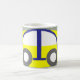 A mug for the car enthusiast. A design of an abstract car formed from the letters of the word "motor". The motif is printed in yellow grey and black.