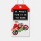 Creative motorcyclist Christmas holiday gift tags featuring Santa biker on a motorcycle.
