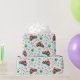 Motorcyclist holiday gift wrap featuring Santa motorcyclist racing through snowflakes and treats to add cheer to your favourite biker's Christmas season.