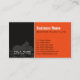 Classic black & orange (with chrome accent strip) harley-davidson colours 2-sided business card. Top left on front has room for business logo or headshot photo. The perfect card for motorcycle related businesses.