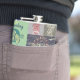 Stainless steel flask with multiple motorcycle designs that have a retro grunge style to them.