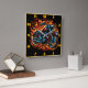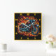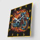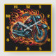 Motorcycle roaring amid vibrant flames at dusk square wall clock
