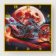 Motorcycle with Canadian flag by moon Square Wall Clock