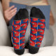 Stylish dark blue socks printed all over with red motorcyclist crash helmets. The perfect gift to motorcyclists and bikers