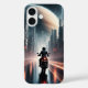 Motorcyclist Riding in Futuristic City with Planet Case-Mate iPhone Case
