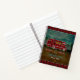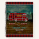 This custom notebook design with a rustic look is perfect for your home-away-from-home on wheels. It shows a red plaid motor home | camper. The RV travels over a background that had a wood grain look with mountains and pine trees. The original text says, "Roam Sweet Roam." Use the easy template to personalize the rest of the text with your own words, such as your family name. The back has your monogram letter.