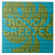 Mots qui signifient été : Brise tropicale, Bleu Cool et Lever de soleil Tequila combinés avec des images de Feuilles Monstera, Palmiers, Hibiscus et créer ce design graphique.