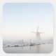 Autocollant photo avec moulin à vent dans la neige à côté d'un canal pendant un lever de soleil brumeux en hiver dans la Pays-Bas
