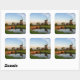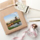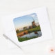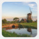 autocollant photo souvenir carré d'un moulin à vent à côté d'un petit fossé avec un pont au bord d'une grande prairie dans la campagne hollandaise au coucher du soleil à Aarlanderveen, la Pays-Bas.