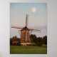 Impression d'affiche verticale d'un moulin à vent sous une pleine lune au début de la nuit dans la Pays-Bas.