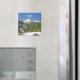 The snow-covered peak of Mt. Baker rises into the clear blue sky. It's a sunny day in the Pacific Northwest. Below the mountain, evergreen trees stand tall before a small alpine lake with beautiful turquoise colour. Mount Baker, also known as Koma Kulshan or Kulshan, is a prominent volcano in Washington state's North Cascades. Bring this scenic view of the Cascade Mountains to your home with this magnet. You can customize the text to give the magnet your own message. This landscape photo is also available on round magnets in three sizes. Enjoy choosing your favourite way to enjoy this magnificent scenery.