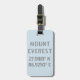 Latitude and longitude coordinates for Mount Everest in modern, industrial style grey font on blue background