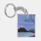 A watercolor painting of Mount Fuji adorns this customizable keychain!