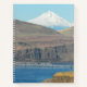 Standard size, spiral bound notebook for home, school, or office that features a scenic, landscape photo image of snow covered Mount Hood as viewed from the Columbia River Gorge, located in the Pacific Northwest. Seen as well is a railroad trestle spanning the river. Image is printed on both sides of notebook. Select your notebook style options.