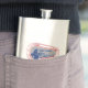 The product is a good size and came exactly as it was pictured.  The lid is not attached to the flask, which could be dangerous on drunken nights... The print came out surprisingly well and looks very sharp.  Would definitely recommend.