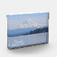 Acrylic photo block for display that features a scenic, landscape photo image of a majestic Mount Rainier and the blue waters of Puget Sound as viewed from the city of Tacoma, Washington. Makes a great travel souvenir and gift!