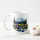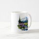 This ceramic coffee mug is shown in a beautiful watercolor art print of Mount Rainier.