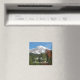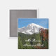 Square fridge magnet featuring a scenic photo image of snow capped Mount Rainier as viewed from within the national park, located in the Pacific Northwest state of Washington. Makes a great travel souvenir!