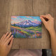This postcard features a watercolor portrait of Mount Rainier National Park in Washington.
