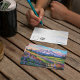 We got these postcards of places with all of our travels for people to send out notes at our wedding! .
