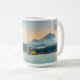 Mount Rainier Washington Travel Mug - This beautiful mug features beautiful Mount Rainier, located in the Mount Rainier National Park in Washington State, standing majestically over Lake Washington. Mount Rainier is a dormant volcano in the Pacific Northwest's Cascade Mountain range. This photo was taken from the 520 bridge from Seattle to the Eastside. This item is perfect for the travel mug collection. Also available in 11 oz. size. Photograph and fine art design is by TK Goforth, copyrighted and all rights reserved, and signed by the artist.