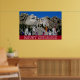 This beautiful photo shows Mount Rushmore National Memorial and the Avenue of flags. Granite sculpture carved into the mountain, this famous and popular patriotic monument shows four American past presidents, George Washington, Theodore Roosevelt, Thomas Jefferson, and Abraham Lincoln. The Avenue of Flags proudly displays the flags of the United States and US Territories.