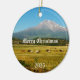 Horses graze peacefully near lightly snowcapped Mount Shasta in California, on a blue sky day. Remember your visit there or dream of going to this majestic area. This keepsake ornament has customizable text that can be changed to suit you.