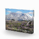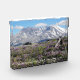 Bloc photo en acrylique pour l'exposition qui présente une photo du volcan du mont Sainte-Hélène recouvert de neige et des fleurs sauvages violets dans le monument national, situé dans le sud-ouest de l'État de Washington. Fabrique un grand souvenir et un cadeau de voyage!