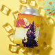Colourful beer or pop can holder with orange mountain, white clouds and purple trees. a very unique can holder. While this is actually Mount Arrowsmith on Vancouver Island, it could be any mountain.