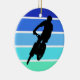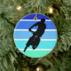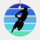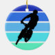 Mountain Biker on Retro Blue-Green Stripes Ceramic Ornament