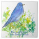 A pretty ceramic tile decorated with a bright mountain bluebird perched on a sagebrush plant inspired by the State of Nevada bird and flower painted with watercolor.