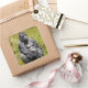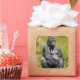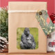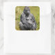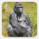Square sticker with an image of an extreme realism colour pencil and watercolor painting of an African Mountain Gorilla and an optional important message.