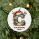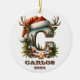 Mountain Holiday C Initial with Antlers Santa Hat Ceramic Ornament