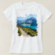 This design features a stunning lake in rugged mountains with the phrase "Let's Go Hiking!"