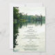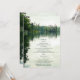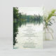 This Mountain Lake rustic wedding details card features a beautiful rustic scene under an overcast sky with lightly rippled but calm water reflecting distant evergreens, cedar trees and rock structures, perfect for a mountain, lakeside, or riverside wedding celebration - by katz_d_zynes | part of the Mountain Lake rustic wedding collection >> https://www.zazzle.com/collections/119499271518309609