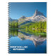 Spiral Notebook with image of mountain and lake with white text "Mountain Lake Notebook".
