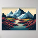 Mountain landscape with river and tree's, beautiful mountain minimalist art