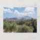 Bright blue sky with big fluffy white clouds, mountains in the background and an olive grove up front..... this is Crete.