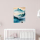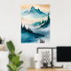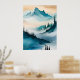 A tranquil mountain painting captures the serene beauty of a misty hillside, where shades of blue meld seamlessly with the fog and clouds. Delicate watercolor strokes bring to life the image of pine trees dotting the landscape. This artwork reflects the cool and refreshing ambiance of nature's wonders, inviting viewers to experience the calm and soothing embrace of the mountains and the crispness of the air.