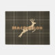 Scottish clan tartan at the doorstep with a neutral tartan plaid. Your own family name emblazoned across the leaping stag.