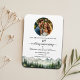An elegant Wedding Anniversary Save the Date magnet with watercolor mountains and pine trees and 1 special photo that you can customize with your details.