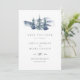 Simple & elegant photo wedding Save The Date card with watercolor snow and mountain pine tree winter landscape.