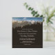 A modern wedding invitation featuring a painting of pine trees and snow capped mountains. On the back you can find a gold striped design (optional). This invitation also has an RSVP card. Beautiful for a wedding in the mountains.