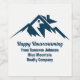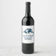 A cool mountain range real estate company wine label for a realty business located in a mountainous city or town. The realtor name is written in navy blue script under the house among mountains. Great marketing item for a mountaintop home builder.