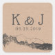 Beautiful rustic mountain retreat wedding monogram sticker with monograms in beautiful rustic font and an illustration of mountain w forests