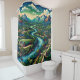 Transform your bathroom into a serene retreat with our “Mountain River Valley Shower Curtain”. This captivating design features a river flowing through a lush valley, surrounded by dense forests and towering mountains. The scene includes charming buildings resembling a church and houses near the riverbank, connected by a bridge. The vibrant colours and detailed textures create a three-dimensional appearance, adding depth and beauty to your home decor. Perfect for bringing a touch of natural elegance and tranquillity to your bathroom.